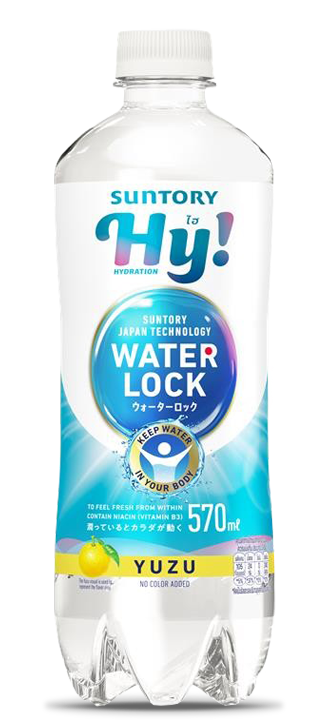 Suntory Hy! WATER-LOCK™ เทคโนโลยีจาก Suntory ประเทศญี่ปุ่น ออกแบบมาเพื่อช่วยกักเก็บน้ำ ให้อยู่ในร่างกายได้ยาวขึ้น จากแนวคิด Hydration Science หรือศาสตร์แห่งการเติมน้ำให้ร่างกาย จากทีมวิจัยซันโทรี่ ประเทศญี่ปุ่น ที่ศึกษาเชิงลึกถึงกลไกการดูดซึมน้ำของร่างกาย ซึ่งพบว่าการเติมน้ำอย่างมีประสิทธิภาพไม่ได้ขึ้นอยู่กับ “ปริมาณ” เพียงอย่างเดียว แต่ขึ้นอยู่กับ “สมดุล” ของแร่ธาตุและระดับความเข้มข้นของสารละลาย (Osmolarity) ที่เหมาะสมต่อการดูดซึมของร่างกาย
